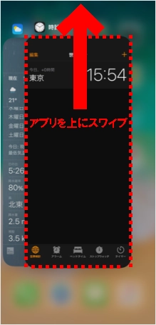 起動中のアプリが表示されます。終了させるアプリを下から上にスワイプ(スライド)します。