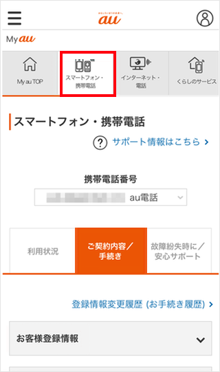 [ご契約内容/手続き]をタップします。