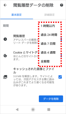 ※Cookieを削除しない場合は、「Cookieとサイトデータ」のチェックを外してください。
