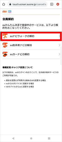 [解約する]をタップします。 ※こちらはAndroidの画面です。iPhoneの場合、解約ボタンは青色です。