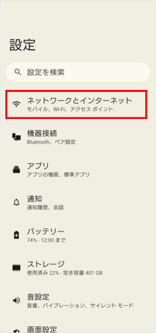 [ネットワークとインターネット]をタップします。