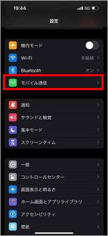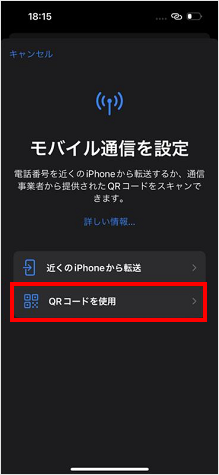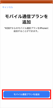 ※機種またはOSによっては「モバイル通信プランを設定」と表示されます。