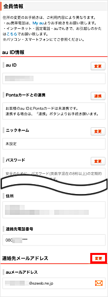 au ID会員情報サイトで、連絡先メールアドレスを変更できます。