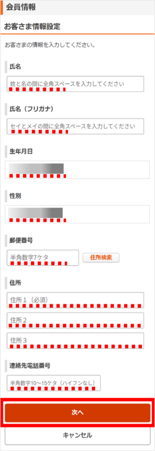 変更したい項目を入力し、[次へ]をタップします。
