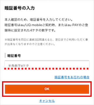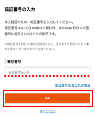 暗証番号を入力し、[OK]をタップします。