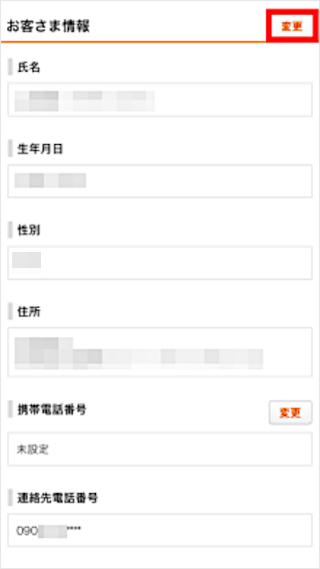 お客さま情報の[変更]をタップします。