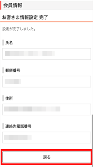 [戻る]をタップすると「会員情報」に戻ります。