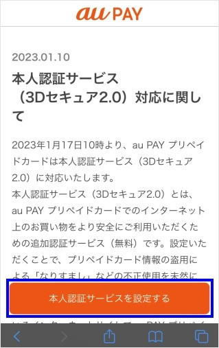 ※「au PAY プリペイドカード」の本人認証サービス(3Dセキュア2.0)はメール方式によるもので専用アプリ方式ではありません。