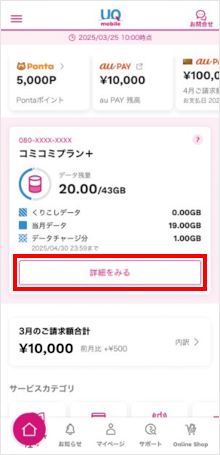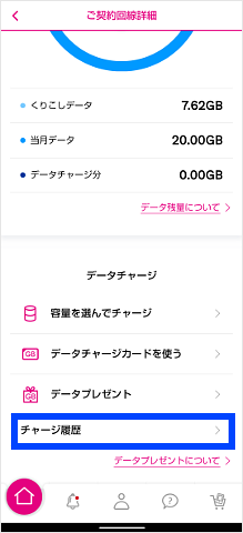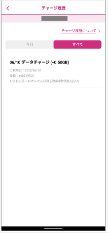 「My UQ mobile(アプリ)」でデータチャージの履歴を確認できます。 詳細は以下をご確認ください。