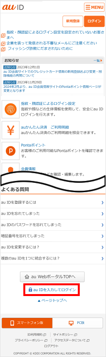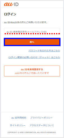 ※au IDが表示されていた場合はログイン済みのため手順6に進みます。