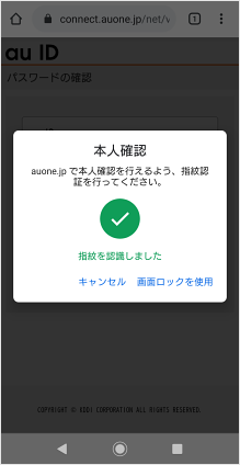 生体認証設定に用いたスマートフォンで、au ID会員情報サイトへアクセスします。