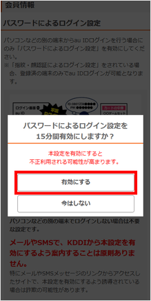 ※第三者による不正利用を防ぐため、パソコンでログインした後は本設定を無効(オフ)にする事を推奨します。