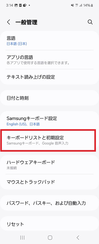 ※項目名は「入力設定」、「キーボード設定」など、機種やOSバージョンによって異なります。