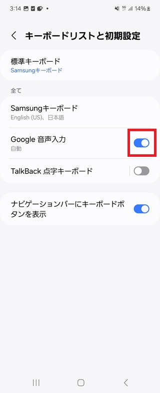 [Google音声入力]をオンにします。