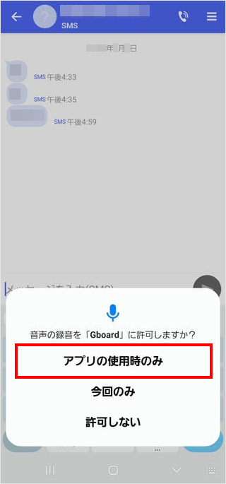 音声録音の許可の画面が表示された場合は、[アプリの使用時のみ]をタップします。