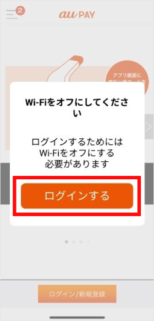 Wi-Fiをオフにして「au PAY アプリ」にログインしてください。