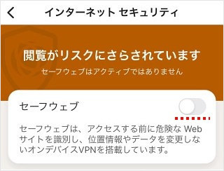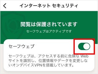 [セーフウェブ]のスイッチをタップしてオフにします。