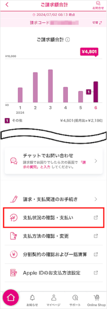 [支払状況の確認・支払い]をタップします。