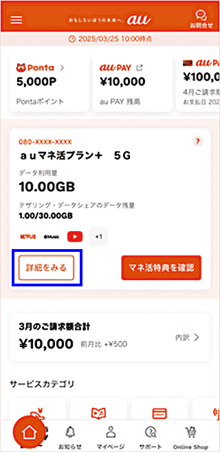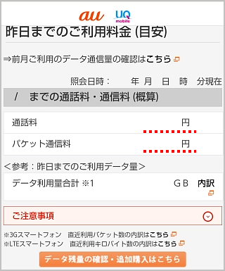 My UQ mobile(Web)で昨日までの利用料金(通話料・通信料の概算など)を確認する方法は以下をご覧ください。