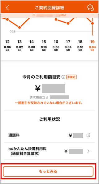 画面を下にスクロールすると今月のご利用額目安が表示されます。