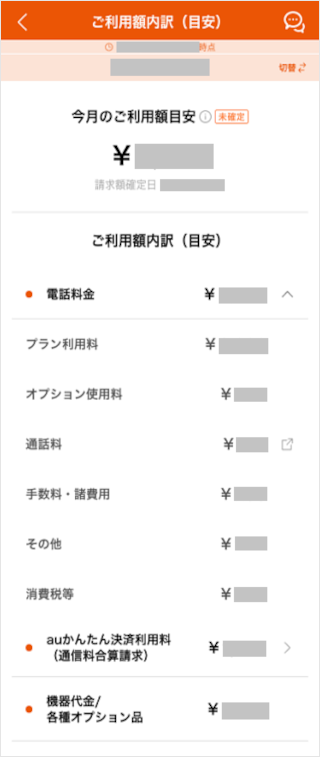 今月のご利用額目安が表示されます。