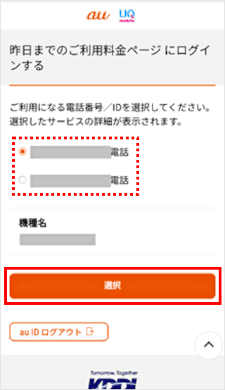 確認したい電話番号を選択し、[選択]をタップします。