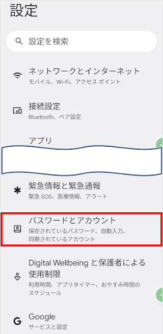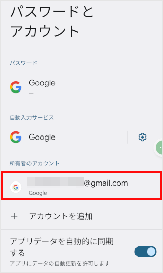 ※「アカウント」や「アカウントとバックアップ」と表示される機種もあります。