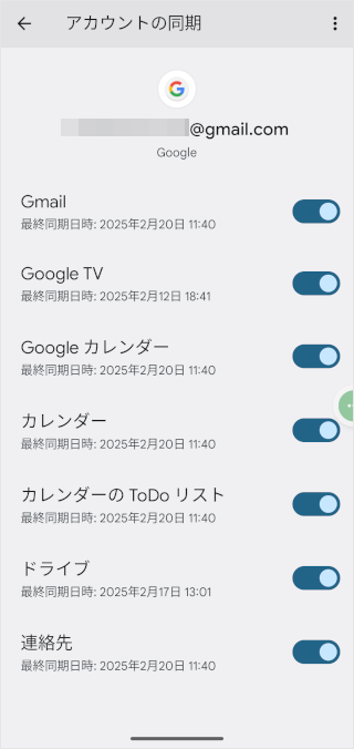 「設定」アプリ内にある、アカウント管理の画面で同期することができます。