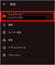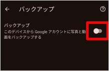[バックアップ]のスイッチをタップすると、バックアップが「オン」に設定されます。