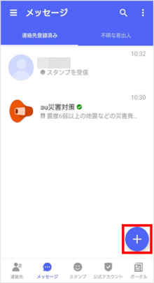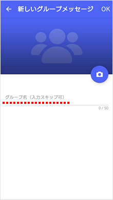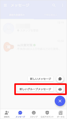 +メッセージアプリの「新しいグループメッセージ」作成画面でグループを作成し、複数人でやり取りできます。