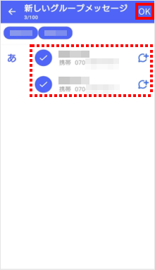グループに追加したい連絡先を選び、[OK]をタップします。
