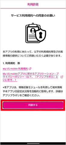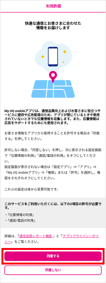 利用許諾画面で[同意する]をタップします。