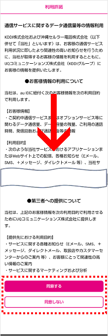 「通信サービスに関するデータ通信量等の情報利用」の同意を選択します。