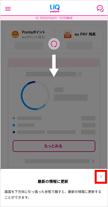 最新の状態に更新する方法が表示されます。確認後[×]をタップします。