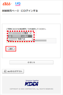 「My UQ mobile(Web)」へアクセスし、au IDでログインします。