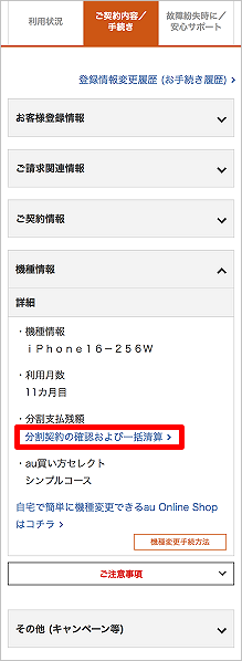 かえトクプログラム/スマホトクするプログラムのご利用や分割支払い(割賦支払い)で購入された分割支払契約の内容は、My au(Web)で確認できます。