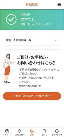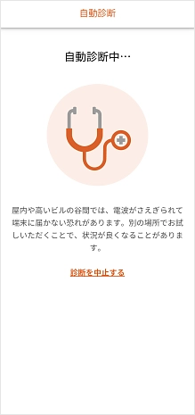 「使い方サポートアプリ」の「かんたん診断」で、スマートフォンの症状や不具合を診断し、異常があった場合は、診断結果に応じた対処方法が表示されます。