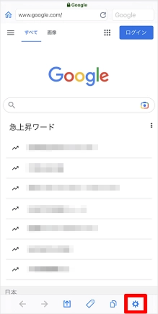 画面右下の設定アイコン(歯車のマーク)をタップします。