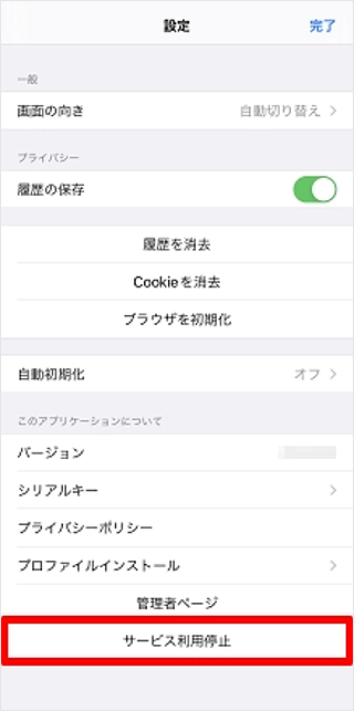 設定画面の最下部にある[サービス利用停止]をタップします。