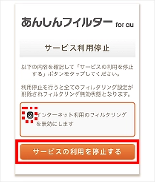 以上で、「あんしんフィルター for au」の利用停止(解除)は完了です。