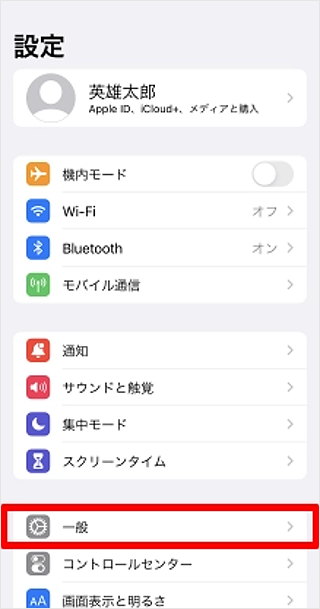 設定メニュー画面を下部にスクロールし、[一般]をタップします。