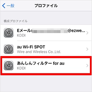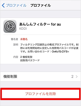 プロファイルが削除され、「あんしんフィルター for au」のフィルタリングが利用停止(解除)されました。
