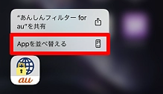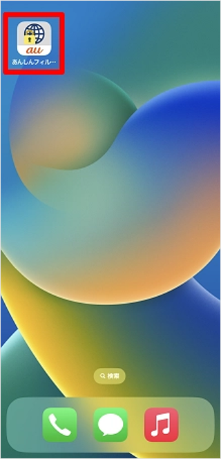お子さまの端末で、ホーム画面より[あんしんフィルター for au]アプリをロングタップ(長押し)します。
