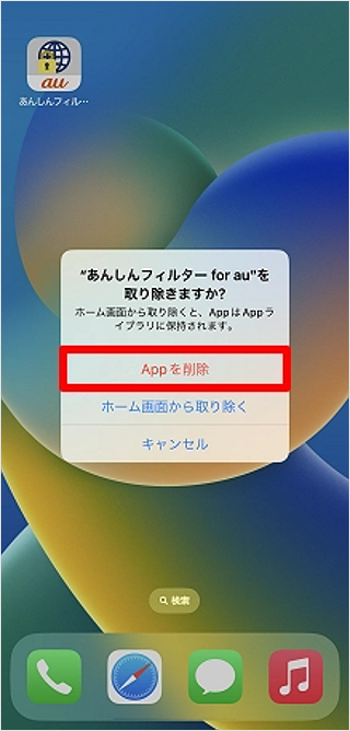 以上で「あんしんフィルター for au」アプリの削除は完了です。