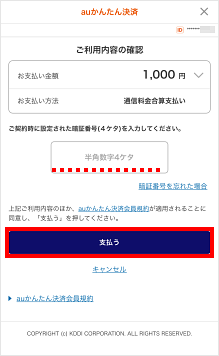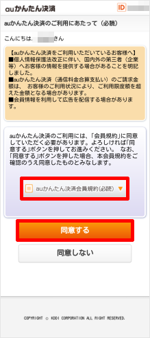 [auかんたん決済会員規約(必読)]をタップし、会員規約を確認後に[同意する]をタップします。