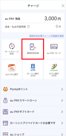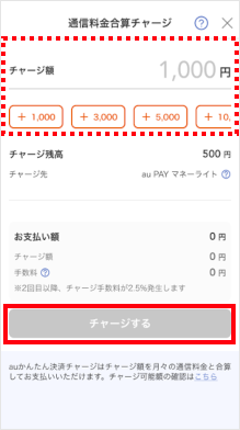 2025年10月2日以降、本ページの手順でauかんたん決済(通信料金合算支払い)でチャージする場合は、チャージ回数に応じて手数料が発生します。
