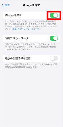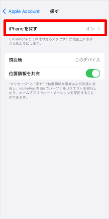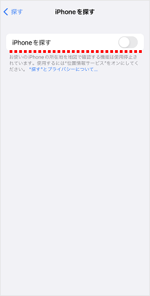 [iPhoneを探す]のスイッチをタップしてオフにします。