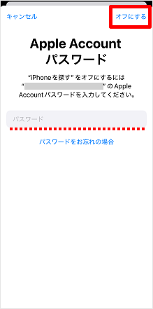 Apple Accountのパスワードを入力して、[オフにする]をタップします。
