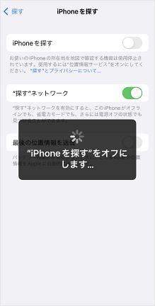 「iPhoneを探す」のスイッチがオフになりましたら、操作は完了です。