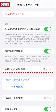 「盗難デバイスの保護」がオフになったことを確認し、[設定]をタップします。